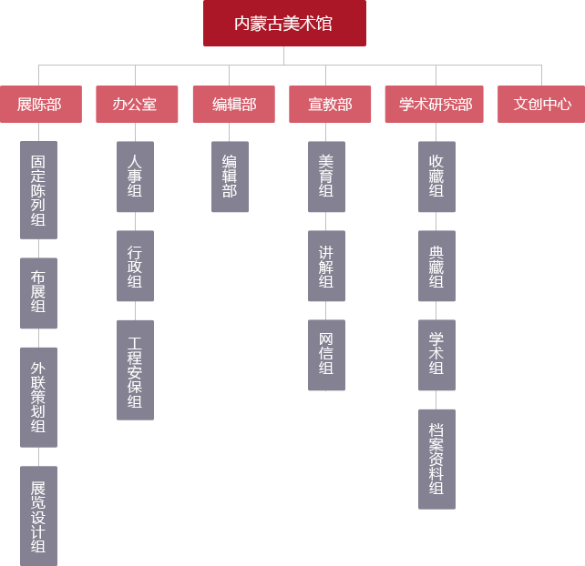 1 办公室:主要负责政务管理、文件起草及运转、人事管理、财务管理、制度建设及对外协调联络,管理艺术品经营中心。