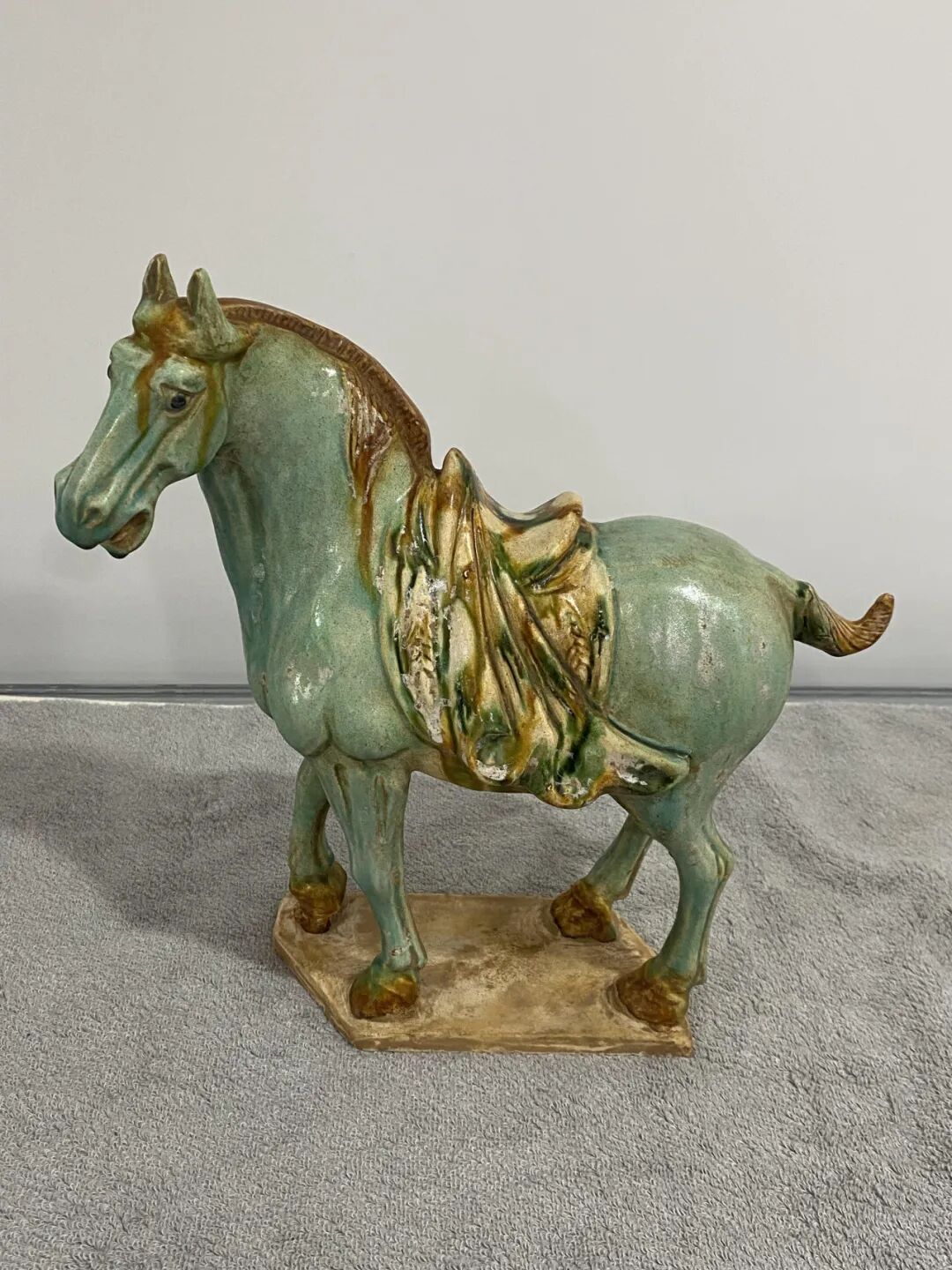 《绿釉唐三彩马》 29x31cm