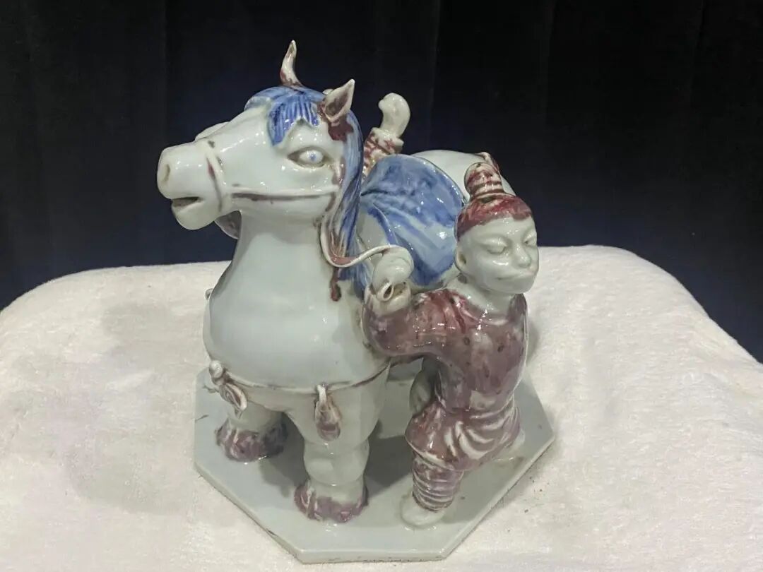 《双俑护马瓷立件》 25x25x27cm