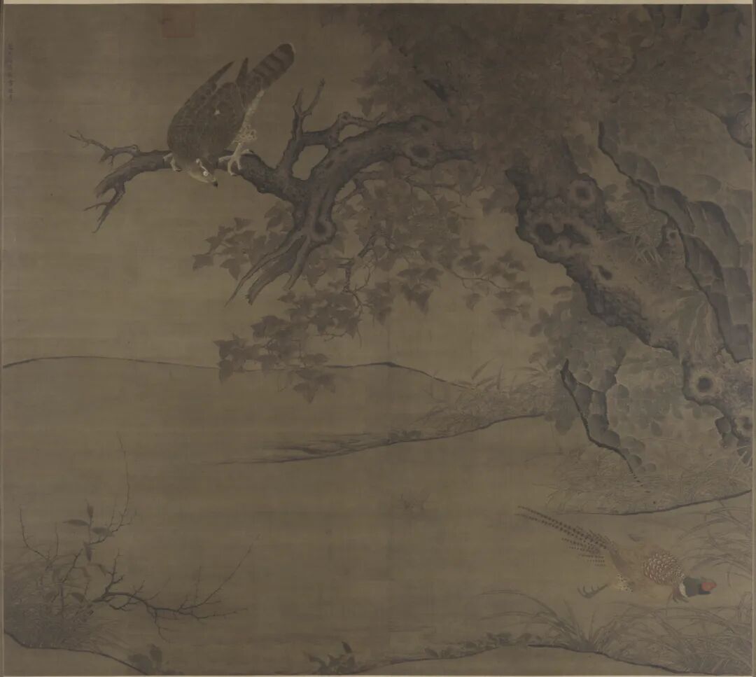 枫鹰雉鸡图轴